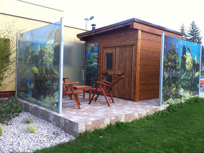 Jak jistě víte, jsme sportovním klubem a sauna je tak, až na výjimky, využívána členy klubu. Sauna je venkovní a nachází se v klidné části zahrady. Po saunování se můžete osvěžit sprchou s nezámrznou pojistkou. Také dlažba je temperována, do sauny tedy můžete jít i když mrzne. Pokud u nás na kopci leží sníh, můžete přímo z potírny vyběhnout do sněhu …
