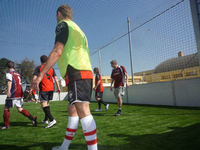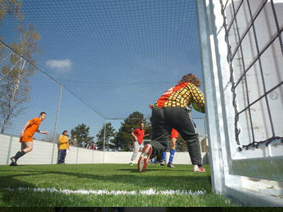 Hřiště o rozměru 9,5 m x 19 m je ohraničeno mantinely a klec tvoří hustá síť, která od mantinelů pokrývá celé boky a strop hřiště. Herním povrchem je umělá tráva III. generace. Míč je stále ve hře, hraje se o mantinely a strop. Na hřišti jsou týmy v počtu 2 + 1. Protože se hra prakticky nezastaví, další dva hráči střídají. Střídání probíhá přes vlastní branku, a to i během hry. Boky branky tvoří dvoje dveře, prvními hráč odchází, druhými střídající přichází.